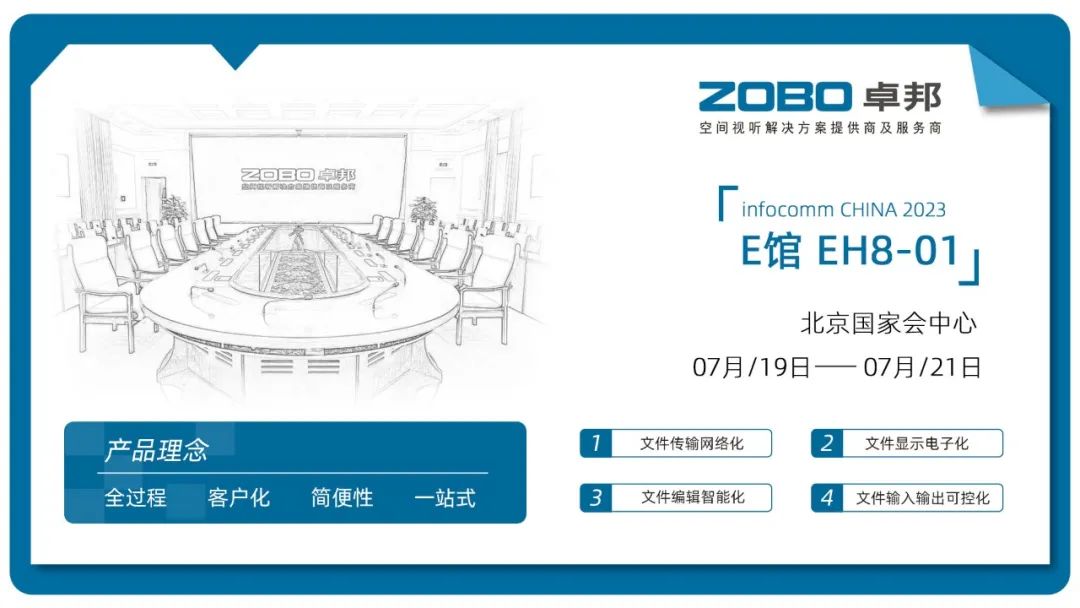 ZOBO無紙化會議係統,具備文件傳輸網絡化、文件顯示電子化、文件編輯智能化和文件輸入輸出可控化的特點,真正意義上為視聽領域帶來全新體驗,提供智慧交互可視化管控平台。